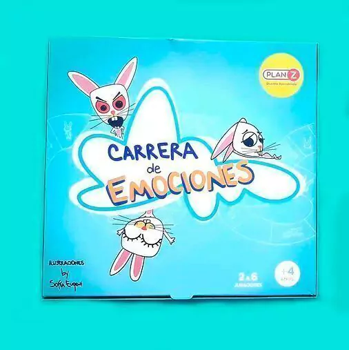 Recomendado para mayores de 4 años. Incluye 35 cartas de emociones, 12 cartas de pensamientos (éstas últimas recomendadas para jugar con niños y niñas mayores de 7 años) tablero, 6 fichas de conejín y 40 zanahorias + manual de instrucciones. De 2 a 6 jugadores