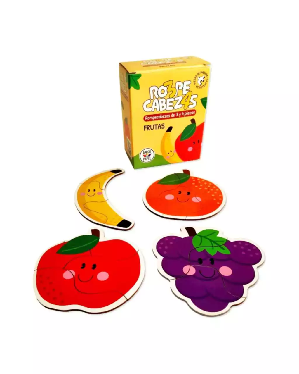 Cada caja contiene 4 rompezacezas de 3 y 4 piezas de madera.
